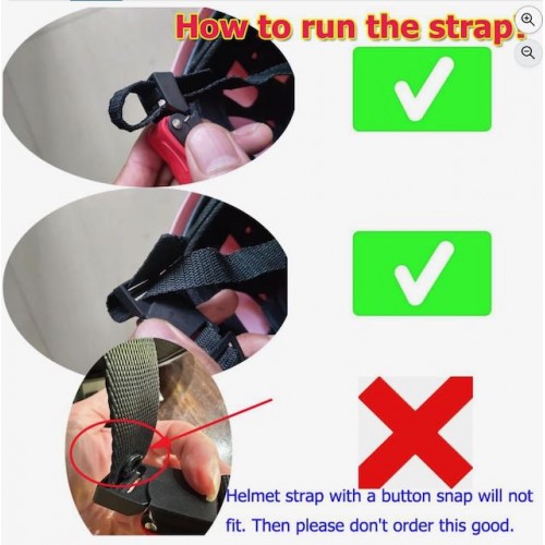 - HELMET STRAP WITH A BUTTON SNAP WILL NOT FIT. PLEASE CHECK THE DETAILS FROM THE IMAGES.